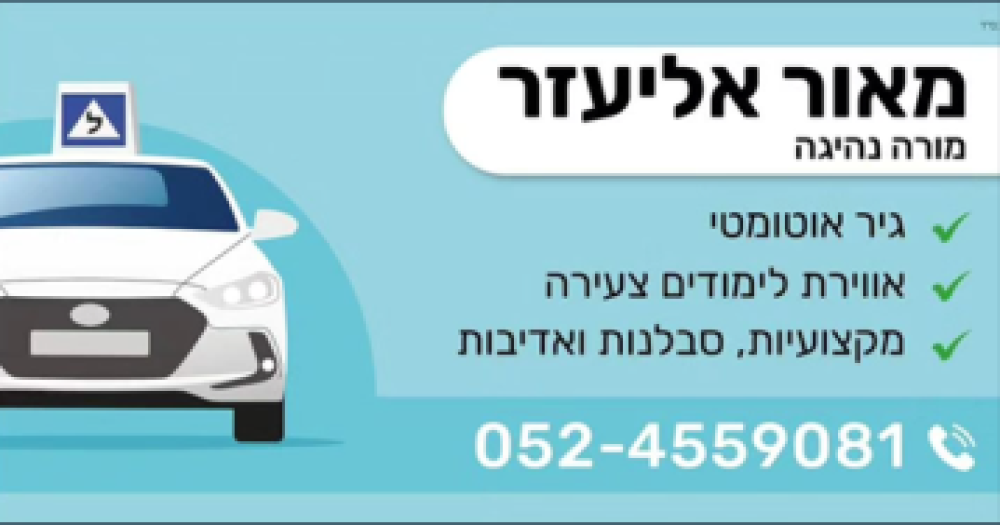 שמי מאור אליעזר,מורה נהיגה על רכב פרטי. אני מזמין אתכם ללמוד לנהוג נכון, לחוויה לימודית ומקצועית. לימודי נהיגה המותאמים לכל תלמיד בצורה הטובה ביותר